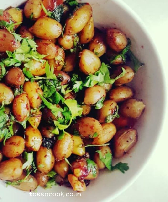 - Add hot boiled peanuts to a bowl and mix all above ingredients well.